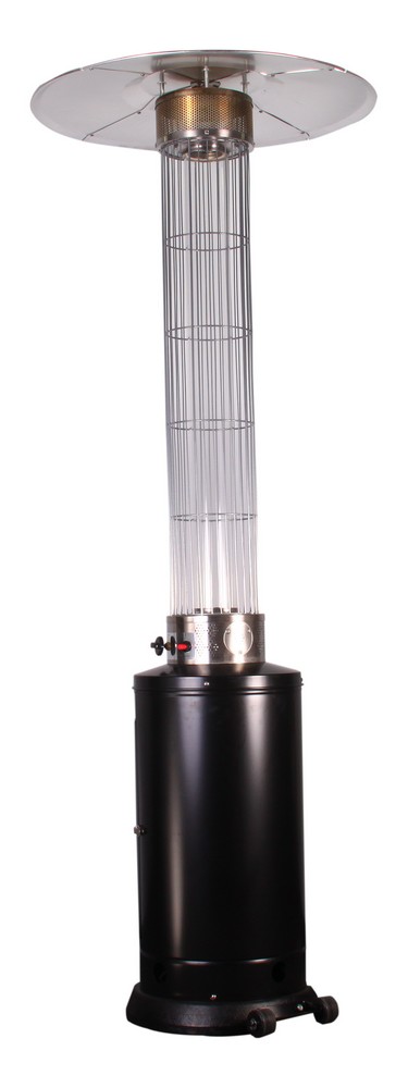 Gasdriven terrassvärmare som värmer upp till 50 m². Gasen som förbränns utstrålar infrarött ljus och värmer på så sätt upp omgivningen.