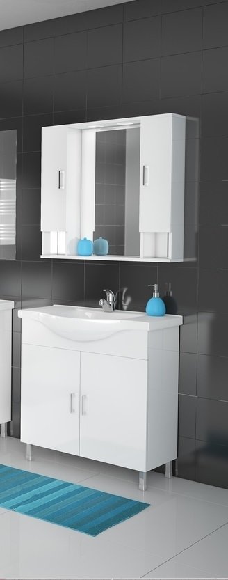 Tvättställsskåp och väggskåp med spegel levereras förmonterade!