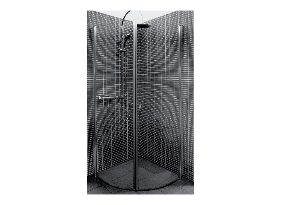 Duschlösningar med blanka aluminiumprofiler och 6 mm härdat klart säkerhetsglas. Duschväggen är svängbar. Duschhörnorna har slagdörrar som även kan öppnas inåt för platsbesparing.Exkl blandare.