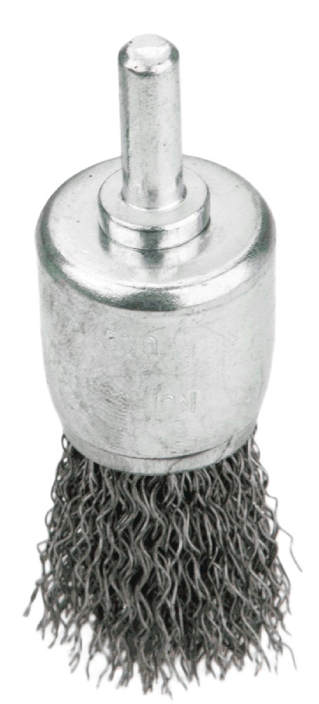 Stålborste med 24 mm diameter, gjord med 0,33 tjocka borst i mässing. Förstärkt hölje möjliggör effektiv rengöring av stålkonstruktioner.