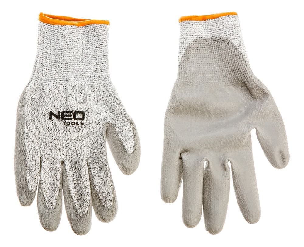 Handskar ger komfort samtidigt som de förhindra att verktyg glider ur händerna. PU-beläggning, nötningsbeständighet klass 4, skärbeständighet klass 5 (högsta), rivhållfasthet klass 4, punkteringsmotstånd klass 3, CE-certifikat.