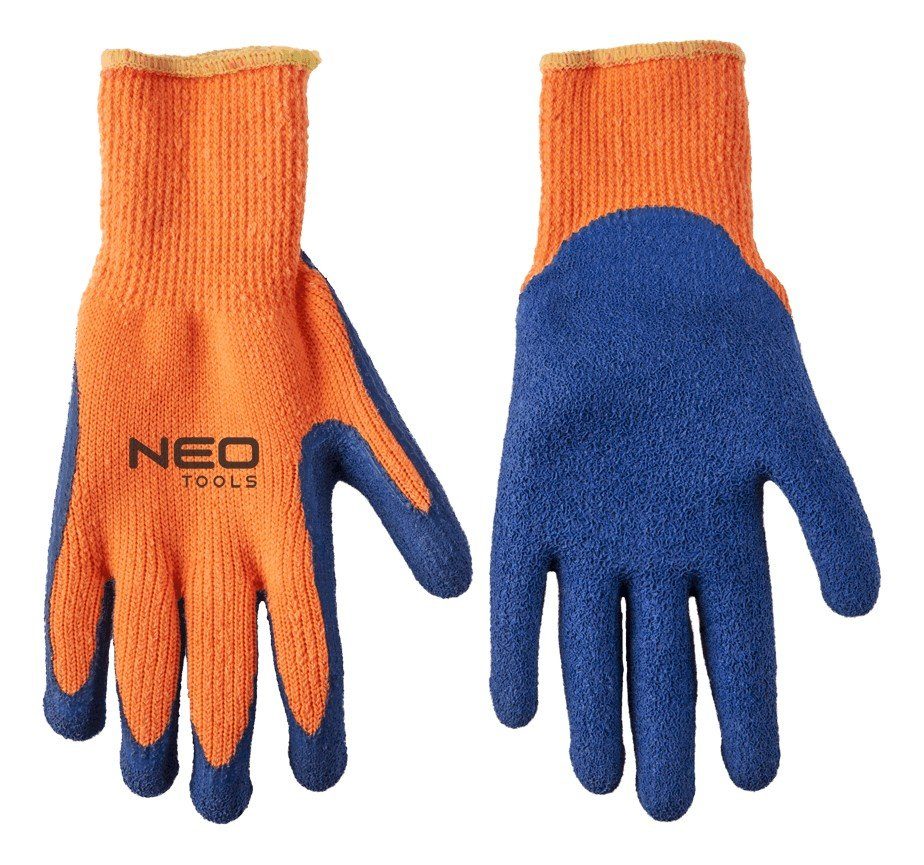 Varma arbetshandskar gjorda av akryl. Handflatan är belagd med hård latex vilket gör att verktygen inte glider och skyddar från damm och repor.