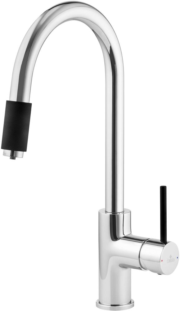 Köksblandare från Aster serien med krom och svart finish och vattenfilter anslutning. Lätt att montera.