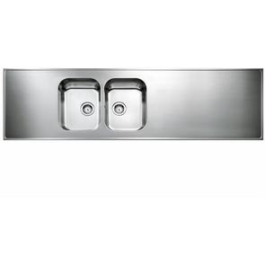 Vändbar heltäckande diskbänk med två stora lådor och avrinningsplan. Levereras med korgventiler, bräddavlopp och vattenlås.