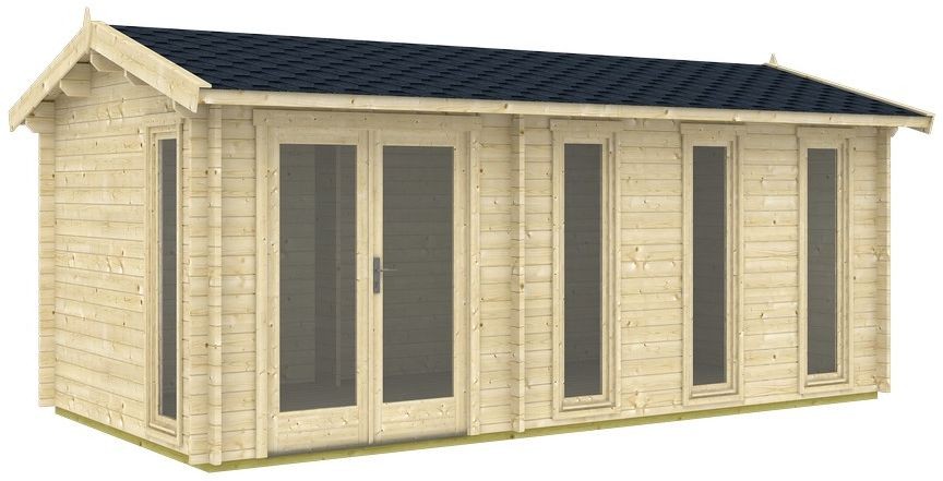 - Dörrar och fönster: Tillverkade av extra torkad laminerad gran. Fönster med ett glas, öppningsbara inåt och utåt. Alla komponenter för installation ingår.