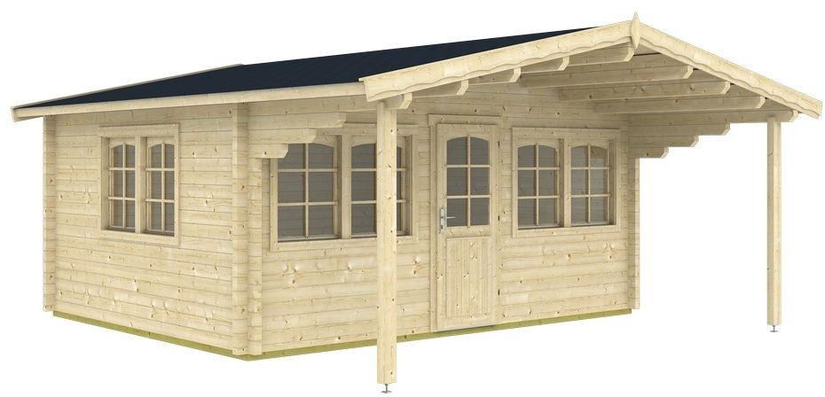 - Golv och tak: Består av 18 mm råspont. Taket kläs med papp, shingel eller plåt. Detta ingår ej.
