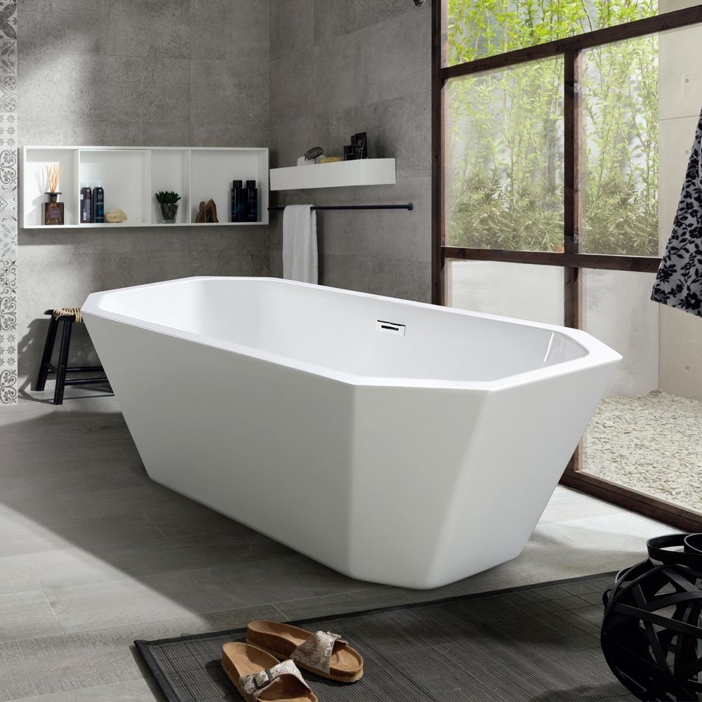 Ett modernt fristående badkar i hexagonalt utförande. Placera mitt i rummet för att skapa en naturlig mittpunkt för dig som verkligen gillar att sätta badtiden i fokus.
