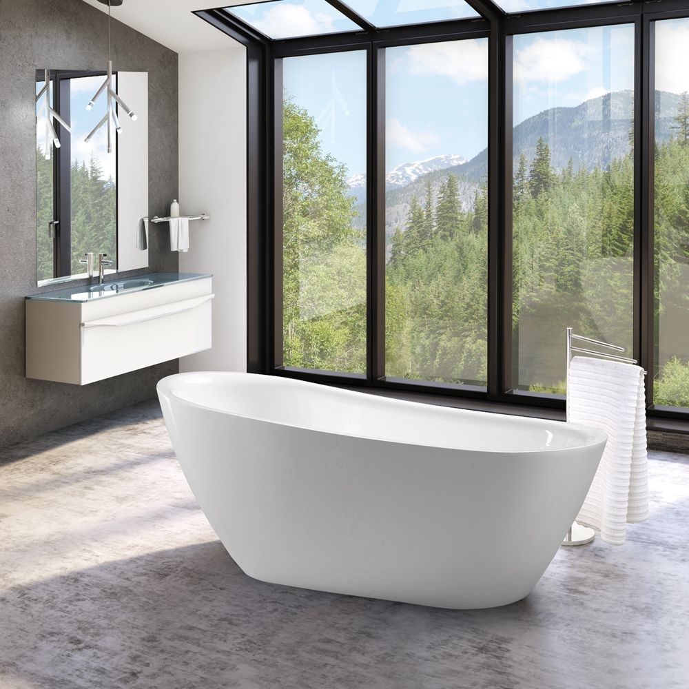 Ett modernt fristående badkar i ovalt utförande. Placera mitt i rummet för att skapa en naturlig mittpunkt för dig som verkligen gillar att sätta badtiden i fokus.