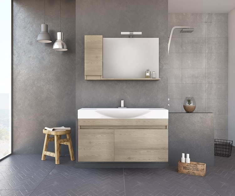 Badrumsmöbel Senso - Träfärgad med spegelskåp