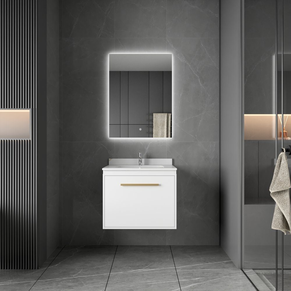 Badrumsmöbler 60 cm Vit & Mässing LED-spegel - Nova