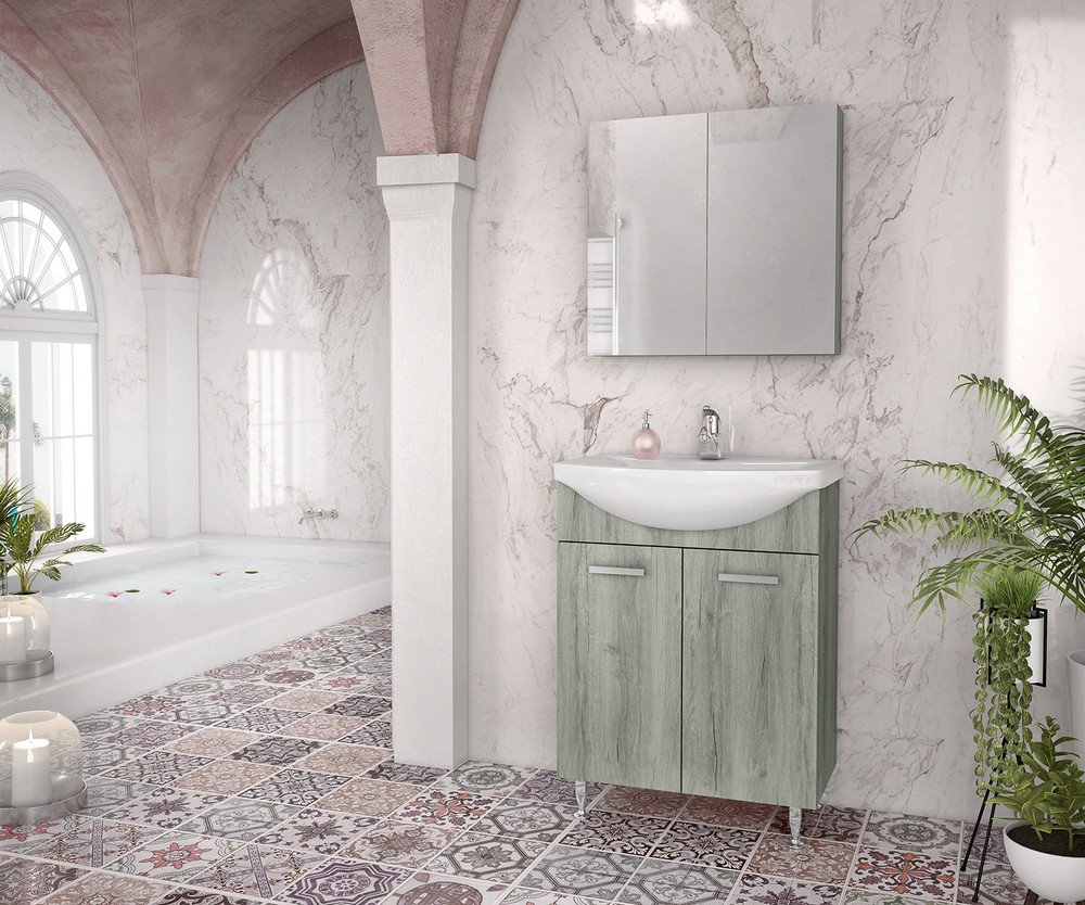 Badrumsmöbler Argento 65 - Brown Wood med spegelskåp