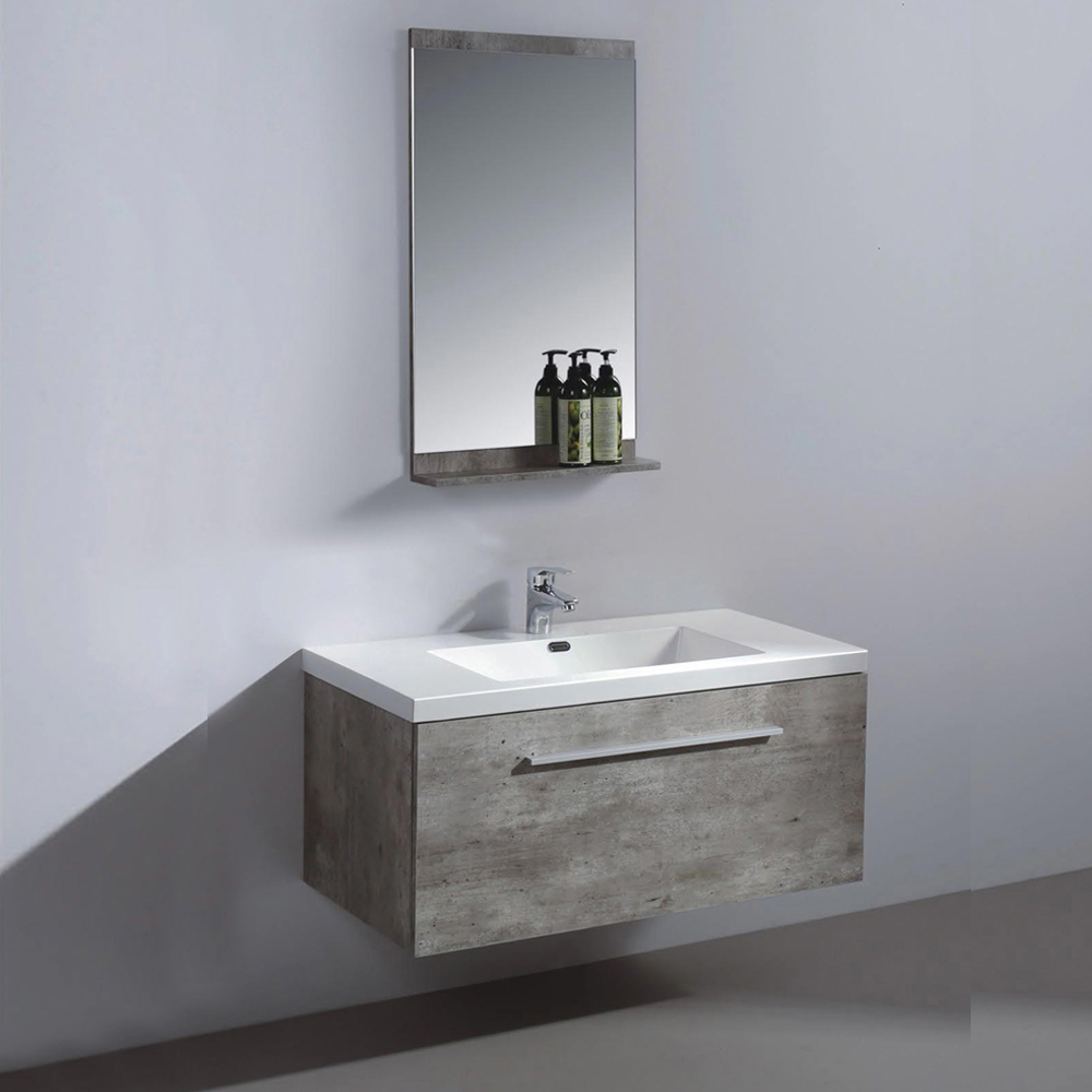 Den medföljande spegeln med hylla matchar skåpet perfekt och ger extra utrymme för förvaring eller dekoration. Detta paket är en komplett och praktisk lösning för dig som söker både funktionalitet och modern design i ditt badrum.
