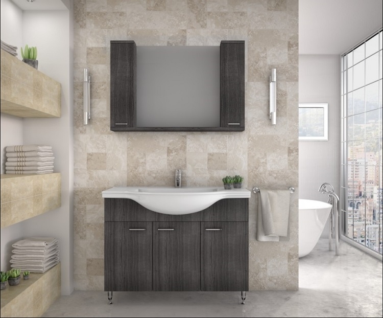 Badrumsmöbler - Grått med spegelskåp