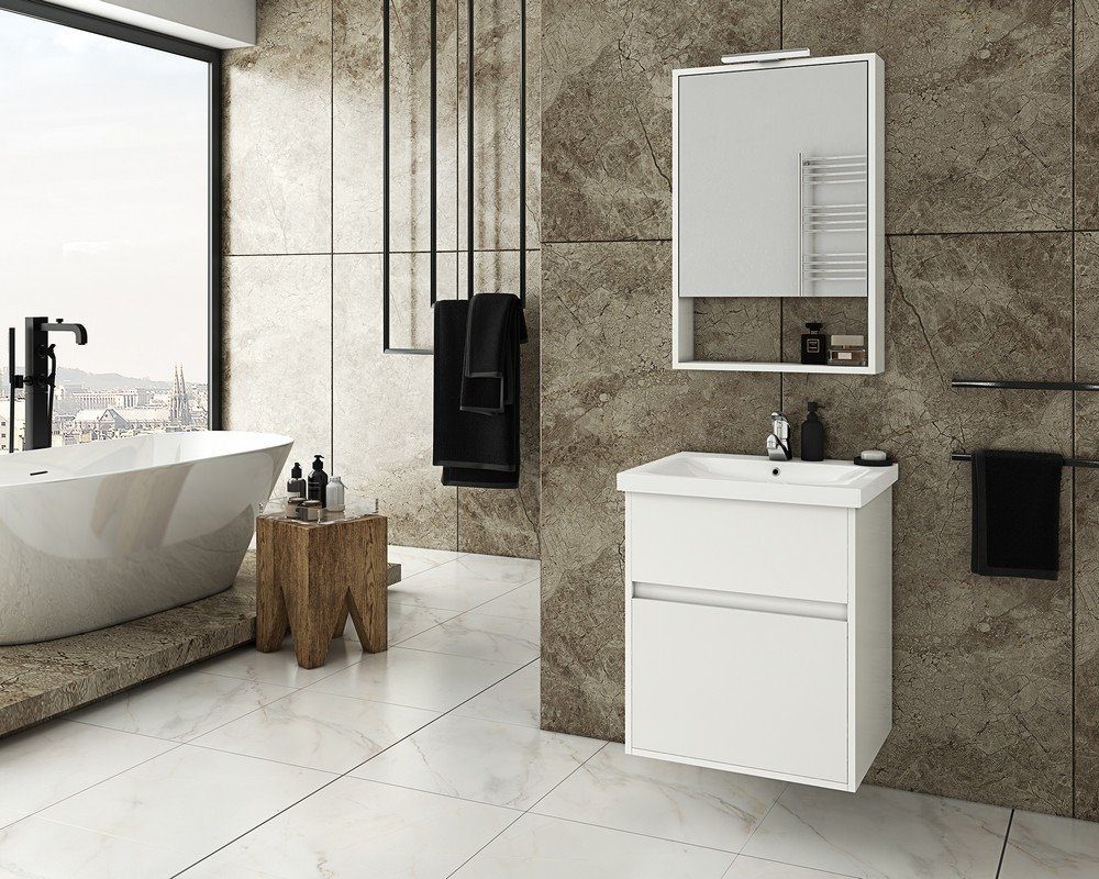 Badrumsmöbler Instinct 55 - Vitt med spegelskåp