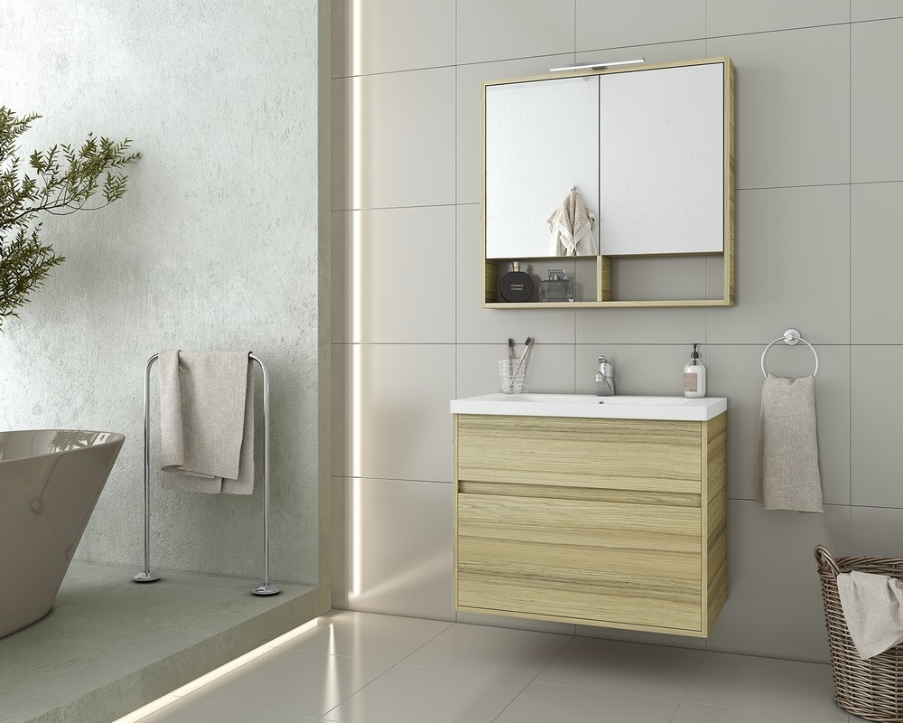 Badrumsmöbler Instinct 80 - Natural Oak med spegelskåp