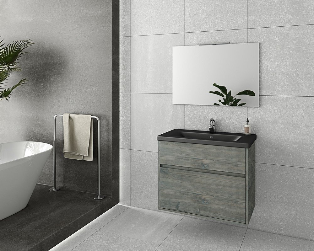 Badrumsmöbler Instinct 80 - Smoked Oak med spegel