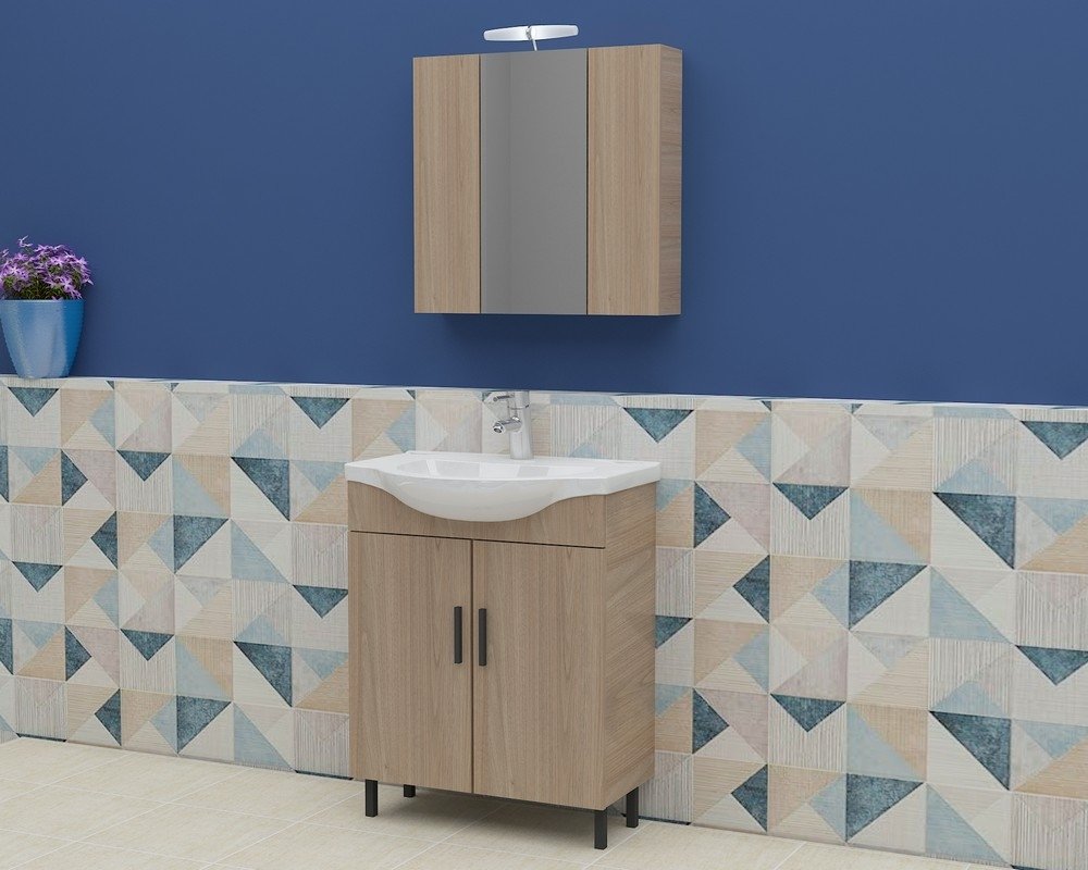 Badrumsmöbler Luna 65 - Beige med spegelskåp