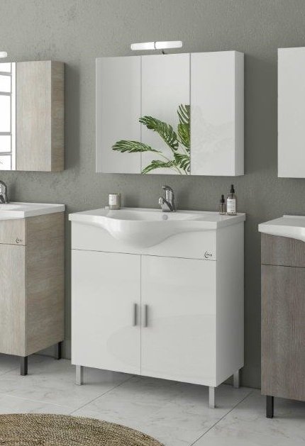 Badrumsmöbler Luna 80 - Vitt med spegelskåp