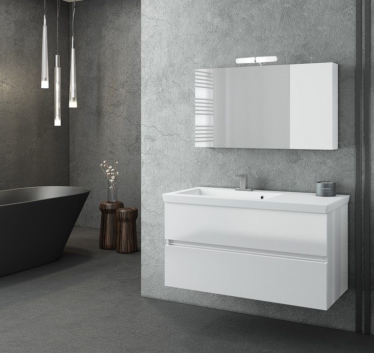 Möbelpaketet Luxus från Nordamist är ett modernt badrumsmöblemang med snygg vit finish och minimalistisk design.