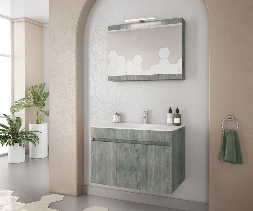 Badrumsmöbler Magnolia smoked 75 med tvättställ i porslin