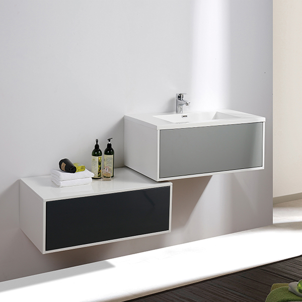 Europeiska badrumsmöbler med vitt utseende. Vit keramikhandfat medföljer. Designen på skåpen är stilren, minimalistisk och passar utmärkt tillsammans med skandinavisk design. Tvättställskåpet har lådor som är enkla och smidiga. Lådorna är mycket rymliga och enkla att komma åt förvaring gäntemot en traditionell skåpdesign.