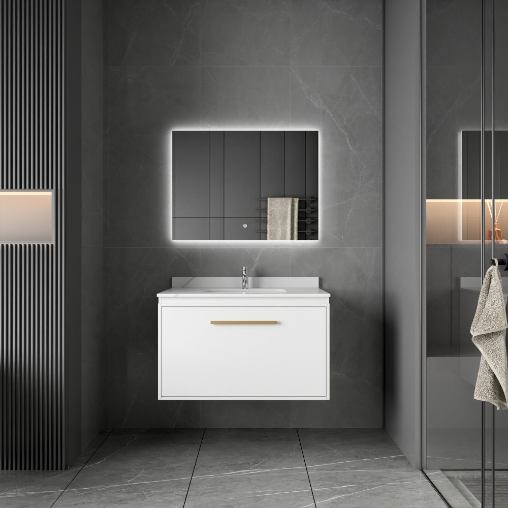 Badrumsmöbler 80 cm Vit & Mässing LED-spegel - Nova: