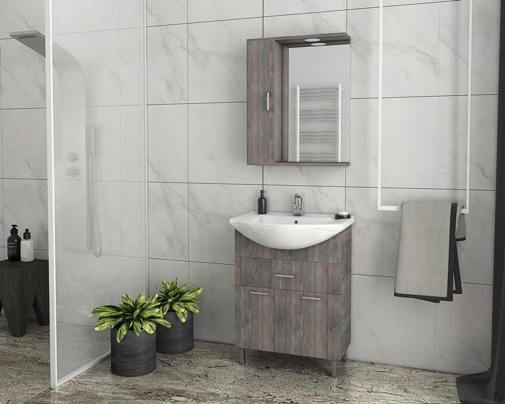 Badrumsmöbler Ritmo 65 - Smoked Oak med spegelskåp