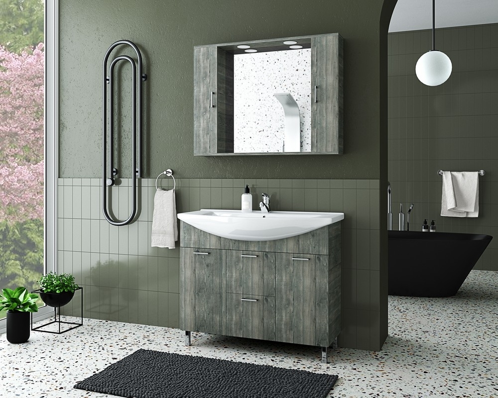 Badrumsmöbler Ritmo 95 - Smoked Oak med spegelskåp