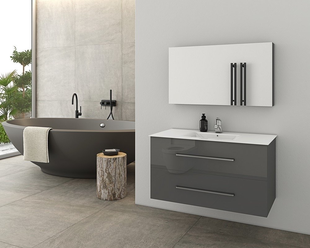 Badrumsmöbler Torino 90 - Antracitfärgat med spegelskåp