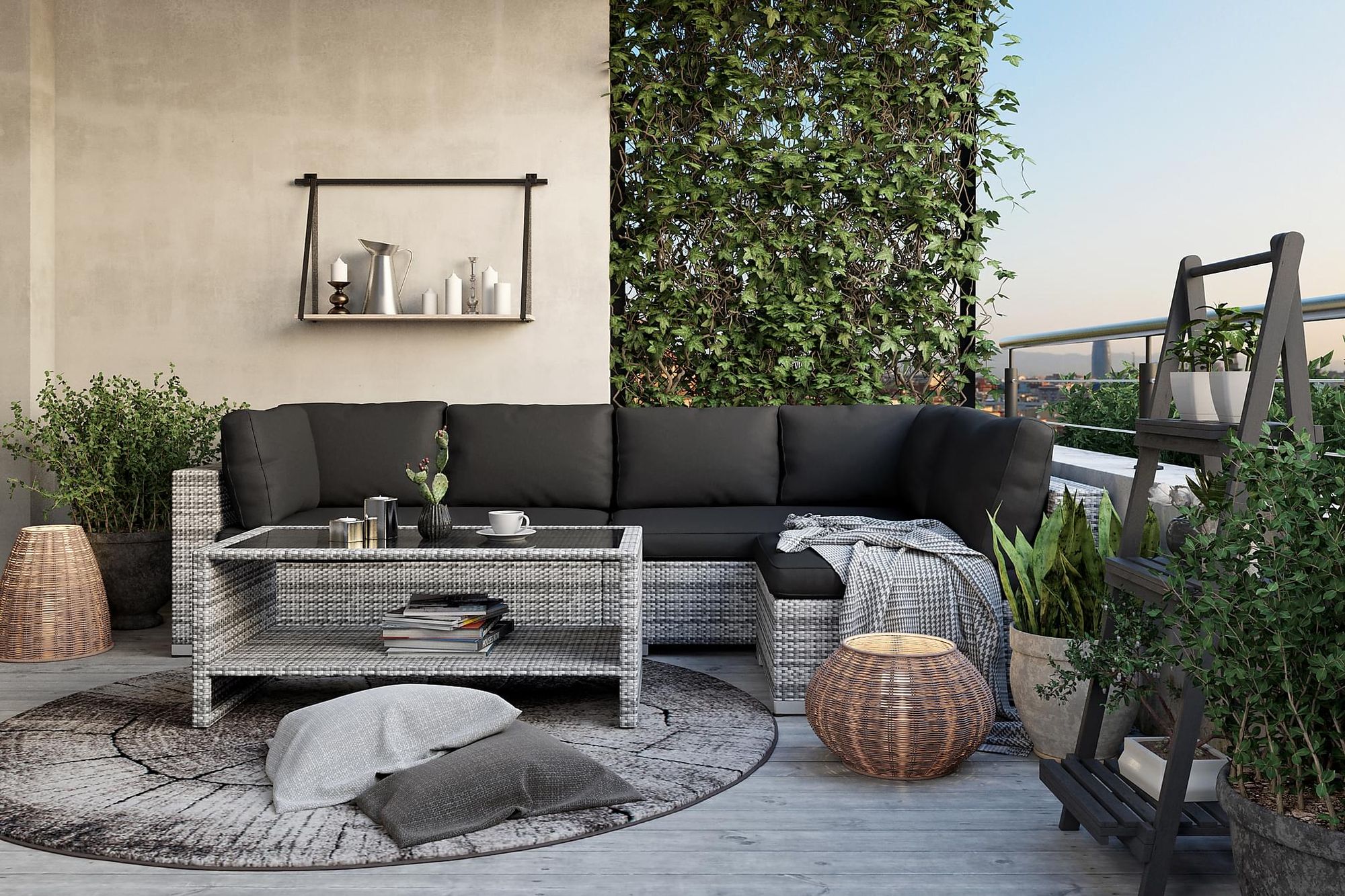 Möbler av flätad konstrotting är betydligt tåligare än äkta rotting. Det är ett omtyckt material som tål att stå ute i stark sol, regn och rusk.