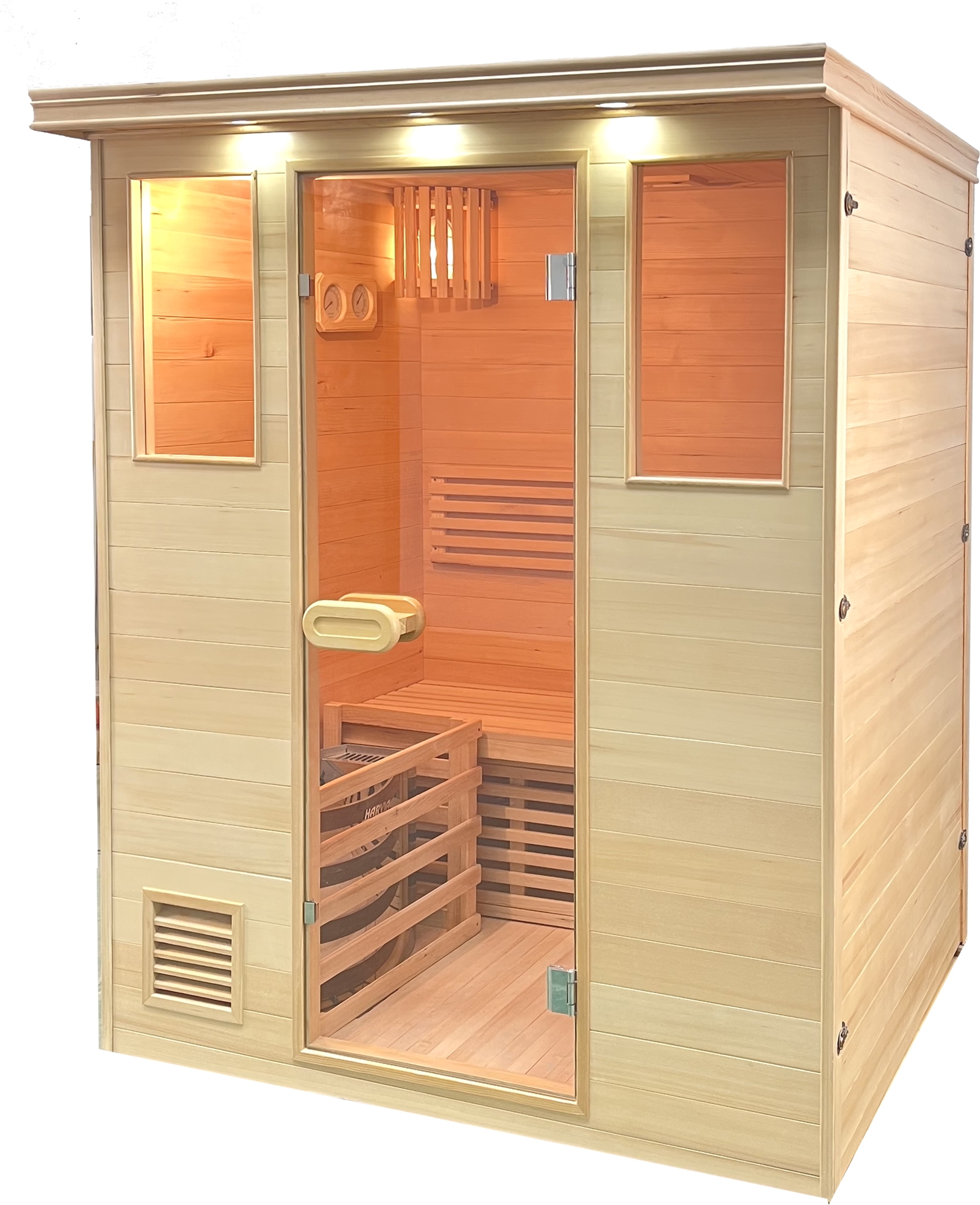 Denna bastu för 3 personer är designade för att ge en avkopplande och lyxig bastuupplevelse i hemmet, fritidshuset eller spaet. Med måtten 150x120x190 cm är bastun kompakt men ändå tillräckligt rymlig för att skapa en behaglig upplevlese.