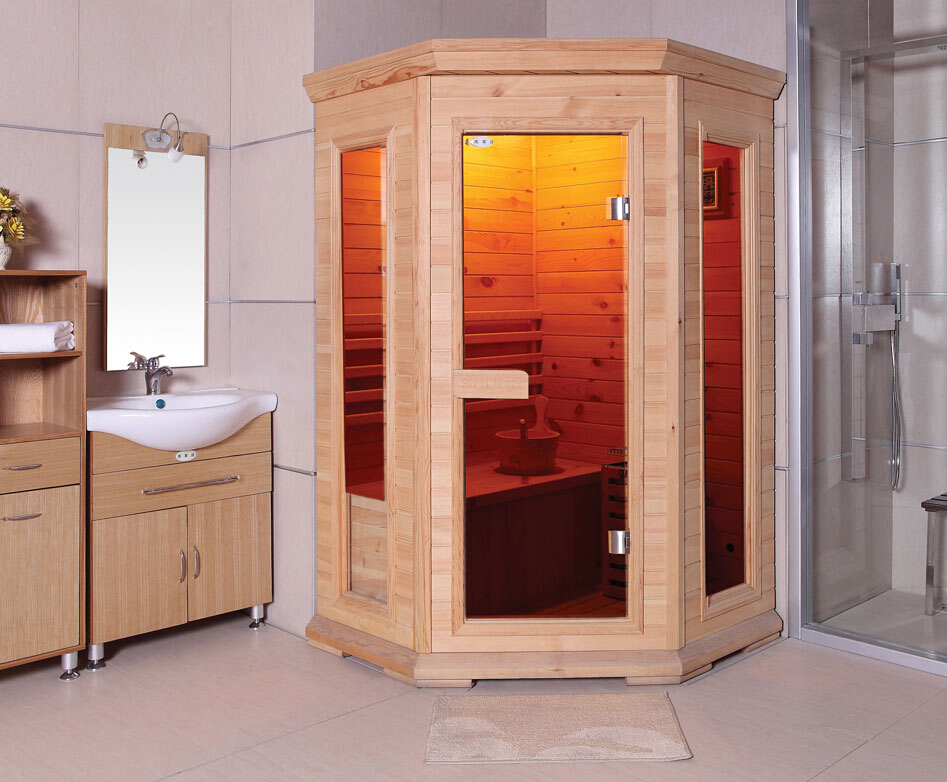 Modern bastu tillverkad i tallvirke. Bastupaketet är komplett med bastuaggregat och styrenhet. Styrenheten har USB-ingång för musikuppspelning samt funktioner för reglering av temperatur och tidsinställningar.