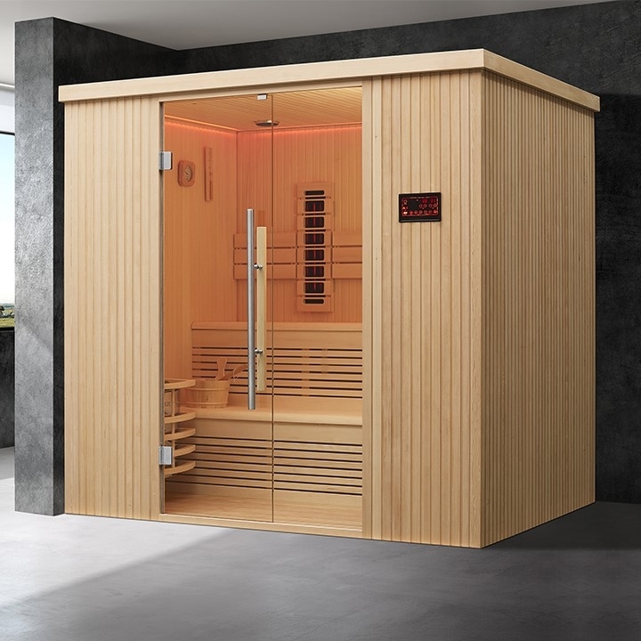 Denna bastu är för dig som verkligen vill få ut så mycket som möjligt av ditt bastubad. Kombinationsbastun har både ett kraftigt bastuaggregat och effektiva infraröda kolfibervärmare. Bastun är lämplig för 4-6 personer.