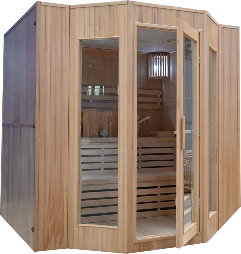 Denna eldrivna bastu är designad för att skapa ett avslappnande basturum i hemmet eller fritidshuset. Med sin stilrenga utformning och högkvalitativa konstruktion passar den även som en fin del i din badrumsinredning. Tillverkad av förstklassigt trä, är bastun både hållbar och estetiskt tilltalande.