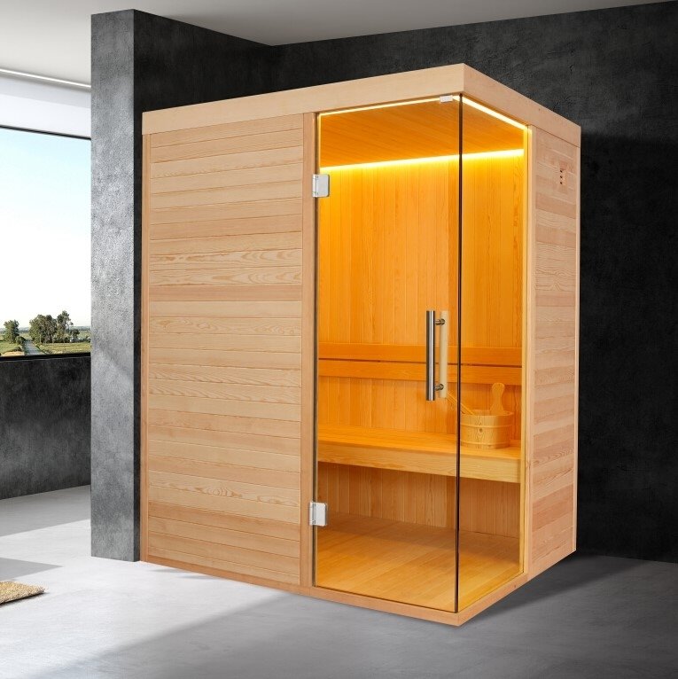 Komplett bastupaket med bastuaggregat och styrenhet. Bastun är lämplig för 2 personer. Styrenheten har funktioner för musikuppspelning via bluetooth och FM-radio samt funktioner för reglering av temperatur och tidsinställningar.