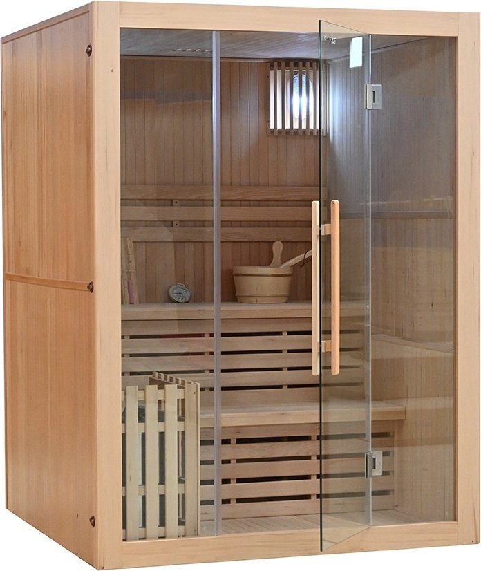 Bastu Traditional TG4 är tillverkad i kanadensisk Hemlock trä, vilket är en sorts gran som har mycket låg tendens att spricka och ger designen en mjuk och varm känsla. Det härdade glas väggarna och dörren ger samtidigt ett stilrent intryck och en möjlighet att se ut.