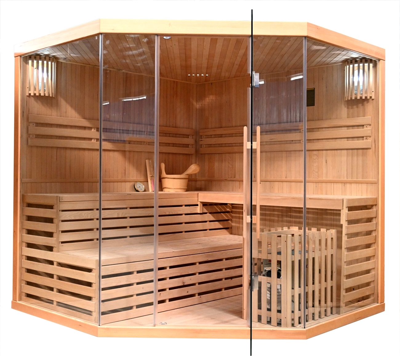 I den klassiska bastun Traditional TG5C kan ni tillsammans sitta 5-6 personer och njuta av härlig värme och avkoppling. Varva ner efter en arbetsdag, ett pass på gymmet eller efter en utflykt i snön.