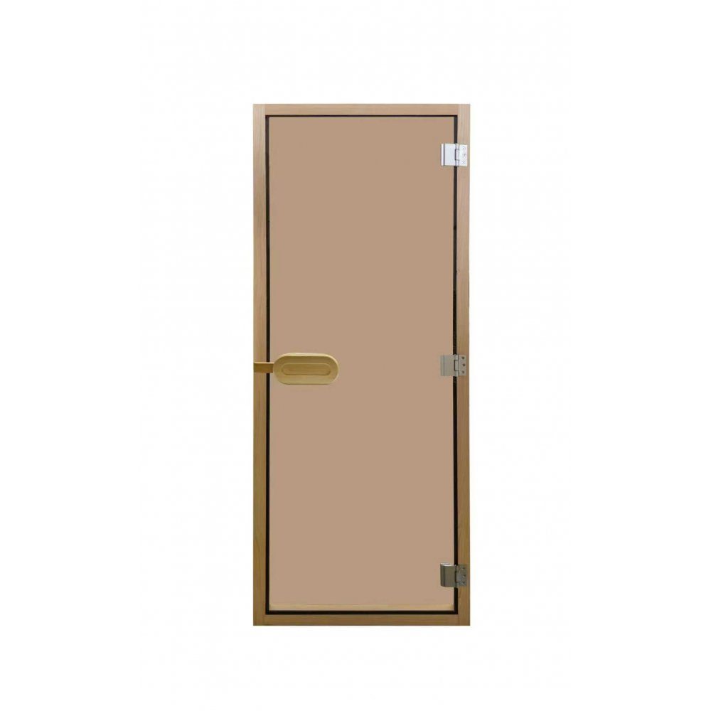 Det 6 mm tjocka härdade glaset i brun ton skapar en varm och inbjudande atmosfär inne i bastun, samtidigt som det släpper igenom ljus och ger en känsla av rymd. Glaset är värmetåligt och anpassat för bastumiljö, vilket gör dörren både säker och hållbar över tid.