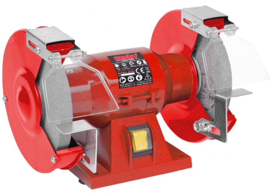 Bänkslipmaskin (150 W) med gnist-skydd (stänkskydd) samt stöd för arbetsstycke.