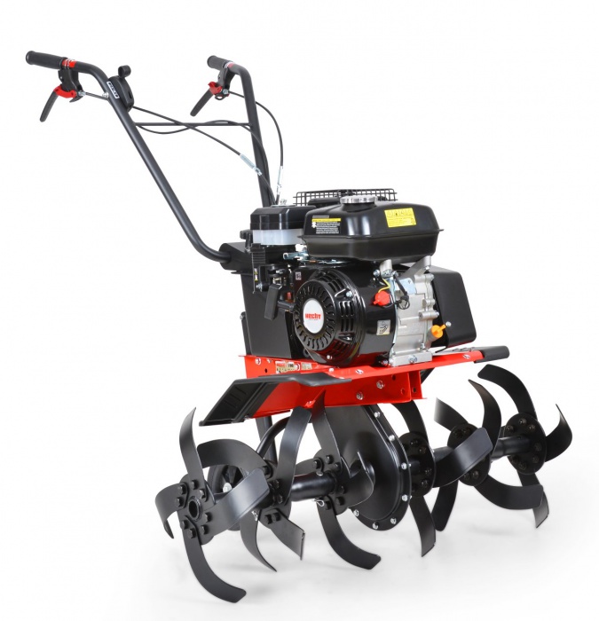 Bensindriven jordfräs - 4-taktsmotor med en effekt på 6,5 hästkrafter. Arbetsbredd 32/50/84 cm. Roterande arbetsknivar 2/4/6 st - diameter 38 cm.