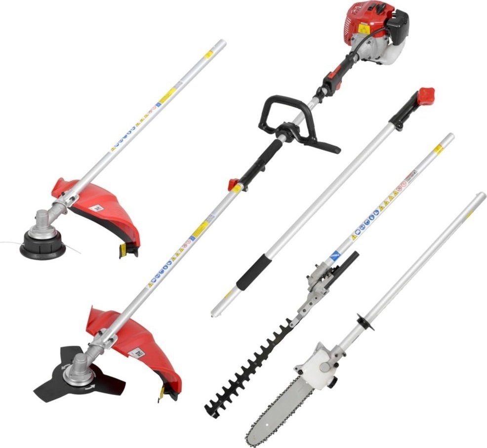 Bensindrivet multiredskap trimmer-häcksax-grensåg 2-taktsmotor + Säkerhetslås