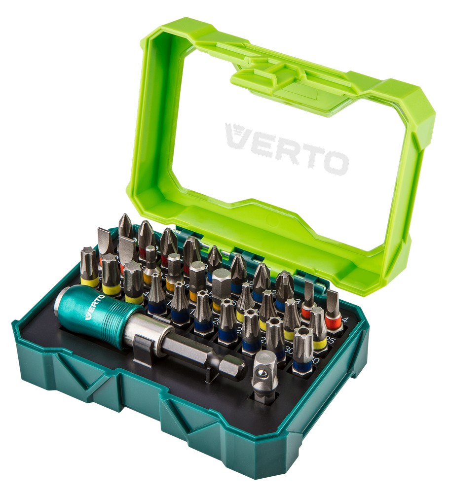 32 st 25 mm bits - 4 x PH, 4 x PZ, 4 x SL, 4 x HEX, 7 x TX, 7 x TT + magnetisk hållare (CrV).