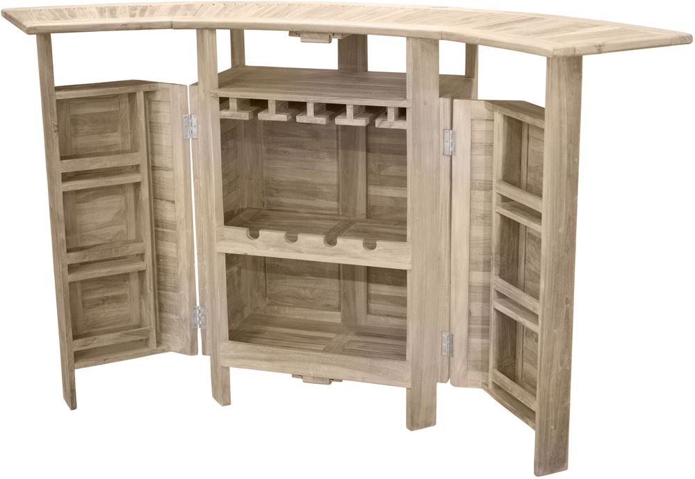 Barbord tillverkat i teak med inbyggt skåp med hyllor.