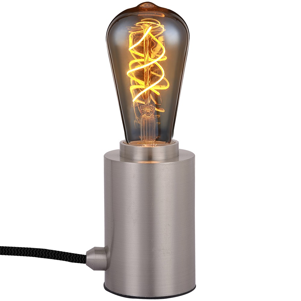 E27 bordslampa i aluminium med en färgfast och repfast stålbelagd beläggning. Denna klassiska design är ett underbart vintage bidrag till ditt hem. Kombinerar mycket bra med våra glödlampor. Denna lamphållare har en svart 150 cm kabel ..