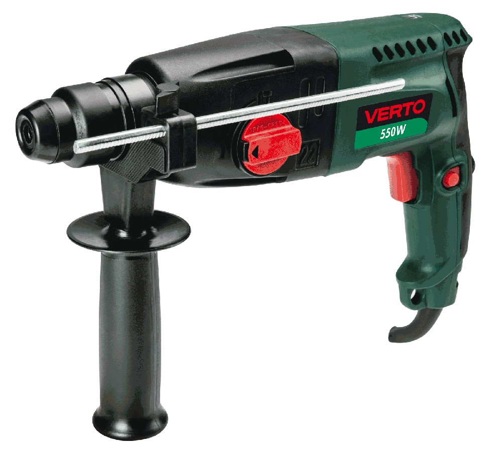 SDS + borrhammare, 550 W effekt med vanlig borr- och slagborrfunktion. Tack vare dess kraft kan man borra hål på upp till 25 mm diameter i trä, 22 mm i betong och 13 mm diameter i stål. Roterande borrhammare med omkopplare för riktning, justering av steghastighet, lås för kontinuerlig drift och snabbfunktion för byte av borrbits. Verktyget är utrustat med 188 cm strömkabeln som möjliggör fri drift. Ergonomiskt handtag som är vadderat med gummibeläggning förbättrar arbetskomforten och säkerheten. Allt levereras i en praktisk plastlåda med laddare och en uppsättning tillbehör: 3 borrar, djupmätare, extra handtag och chucknyckel.