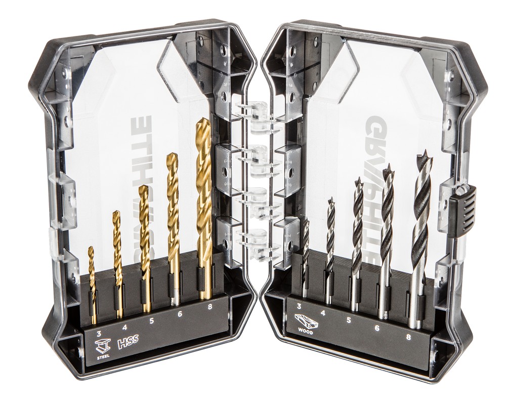 Kompakta låda för praktisk förvaring i verktygslåda, verktygsskåp eller verktygsväska. HSS 3, 4, 5, 6, 8 mm, trä 3, 4, 5, 6, 8 mm
