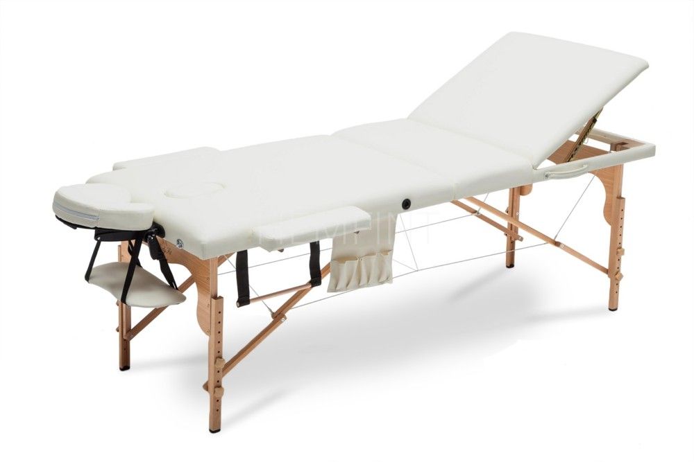 Bred massagebänk med träben - 3 zoner - Enfärgad