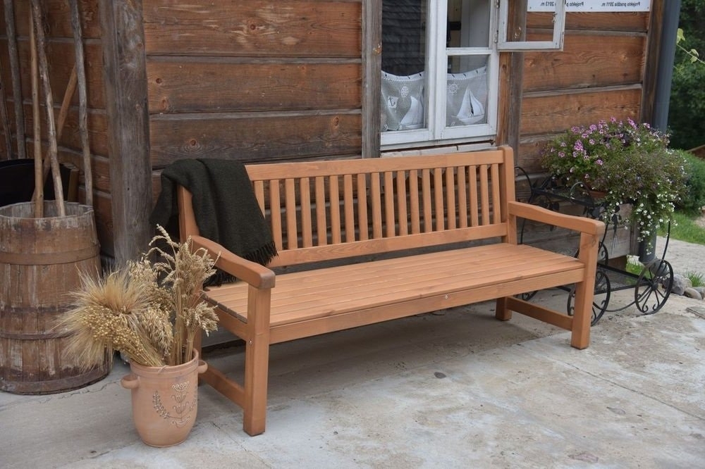 Brooklyn är en cappuccinofärgad träbänk med klassiskt utseende. Passar bra på de flesta terrasser, balkonger och uteplatser.
