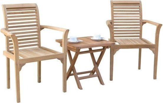 Cafégrupp med minibord och stolar i teak som passar utmärkt till balkongen, altanen eller trädgården.