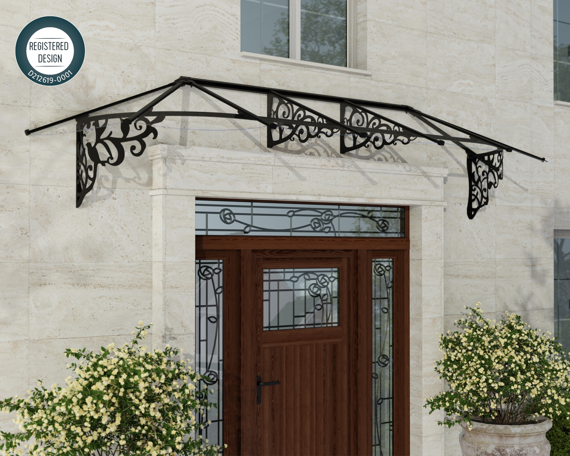 Skydda din entré och få den att se vacker ut med Lily entrétak. Med rostbeständiga aluminiumprofiler, pulverlackerade galvaniserade stålfästen med utsmyckade detaljer och genomskinliga paneler är entrétaket praktiskt taget underhållsfritt. Det är enkelt att montera och lätt att installera med den medföljande väggmonteringssatsen, oavsett om du använder det som en fönstermarkis, ytterdörrstak, verandatak eller garageportstak. Öka värdet på ditt hem eller din fastighet med denna miljövänliga förlängning. Entrétaket finns i olika storlekar för olika användningsområden, oavsett om du skyddar ditt fönster, din veranda, din ingång eller ditt garage, skapar Lily alltid en slående entré.